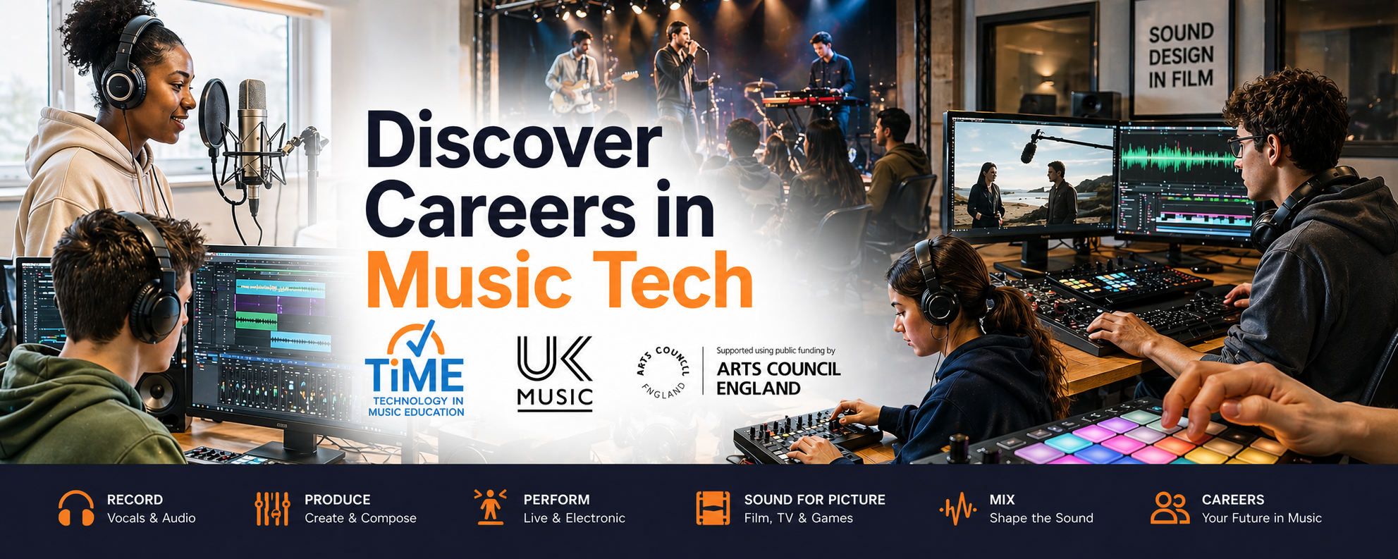 Discover Careers in Music Tech is a new national programme from TiME, delivered in partnership with UK Music and supported using public funding by Arts Council England.