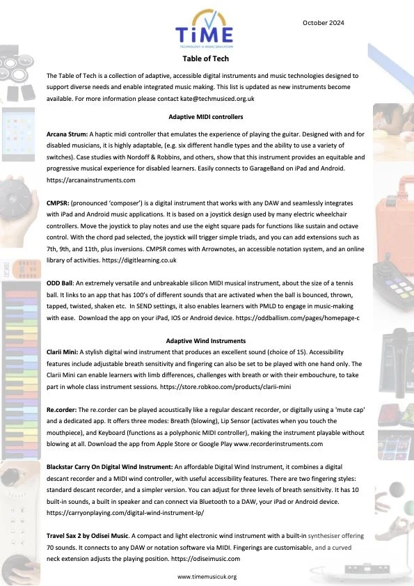 TiME (Technology in Music Education UK) can bring the Table of Tech to you, with over 25 different music technology products to get your hands on.